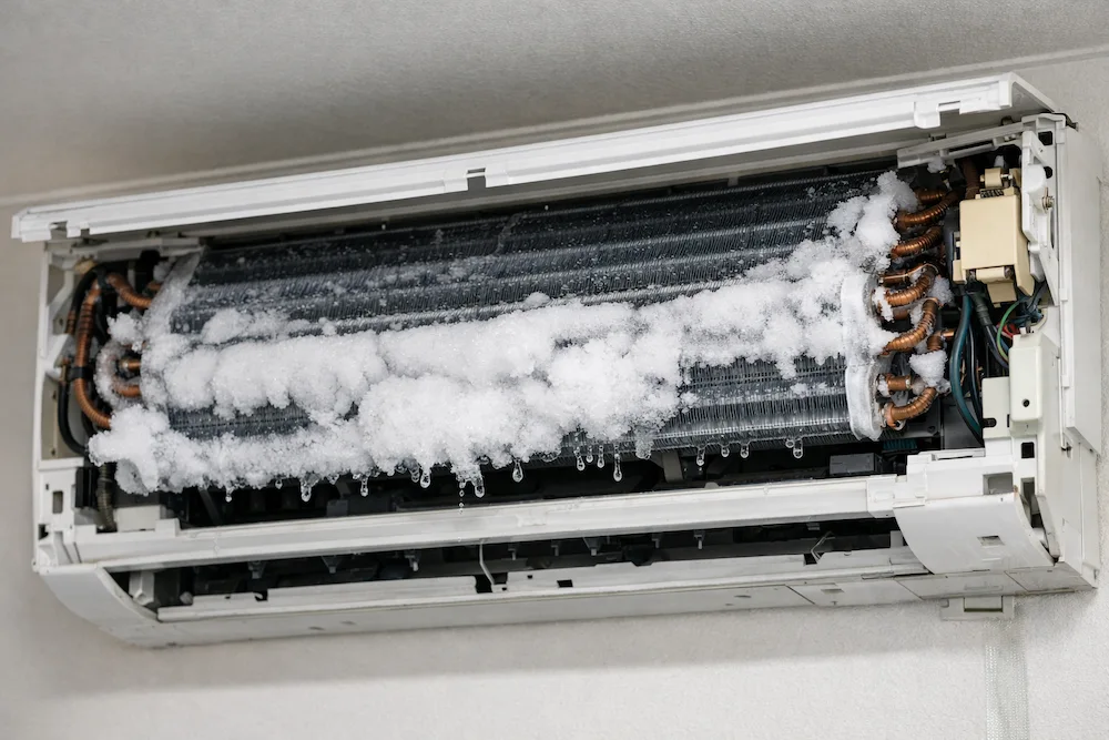Frozen indoor coil – a common sign of low or leaking AC gas.